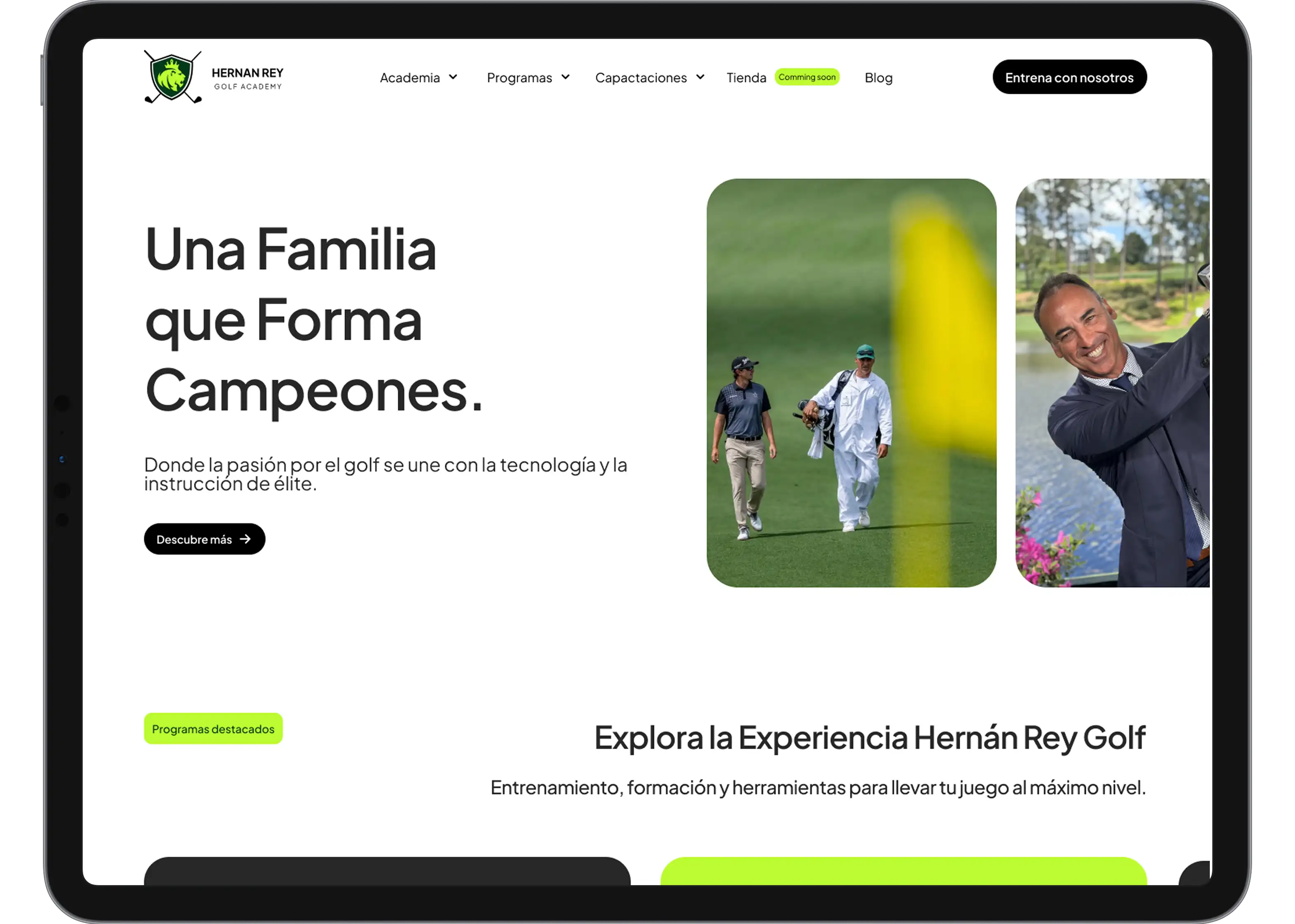 The redesign positioned Hernán Rey Golf Academy with a modern, professional, and aspirational digital presence that reflects its prestige and excellence while building stronger trust and engagement with players, families, and institutions.