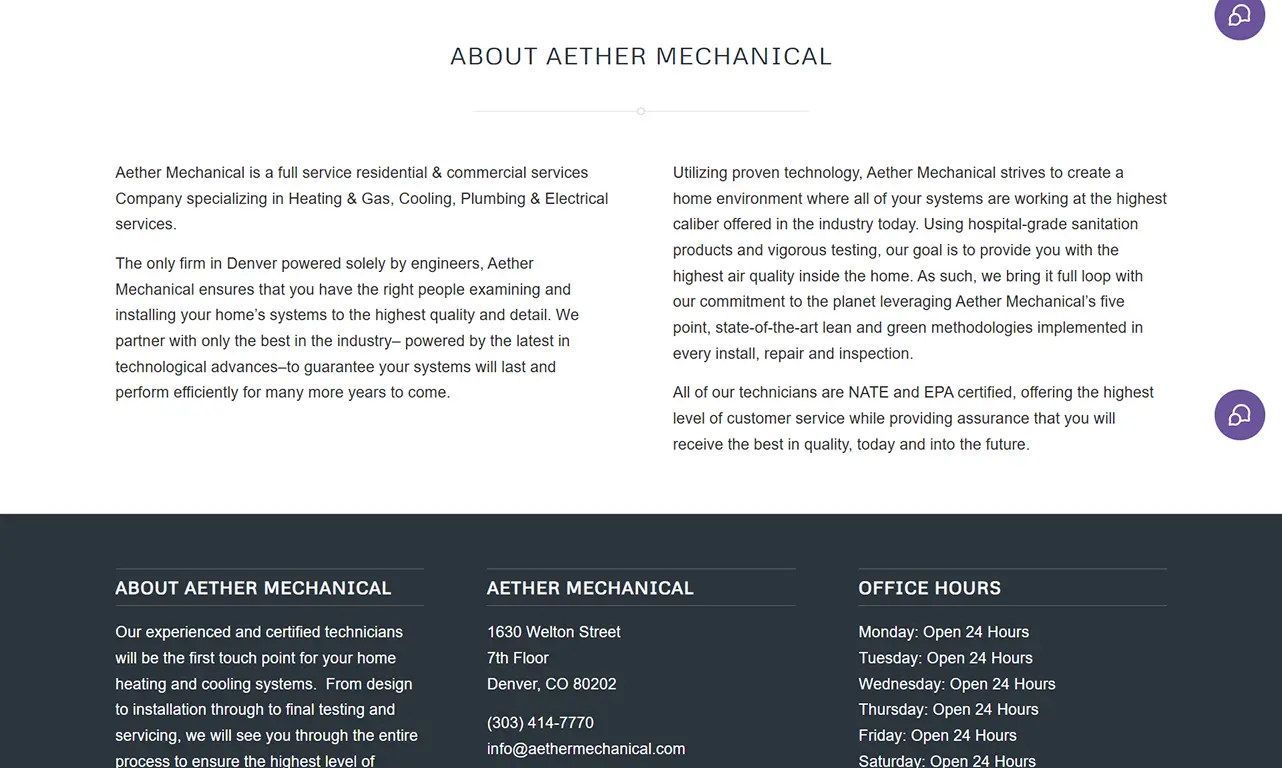 Aether Mechanical is an HVAC service provider based in Aurora, Colorado. Operating in the competitive Denver Metro area, they provide high-end heating, electrical, cooling, and plumbing solutions for residential and commercial clients.