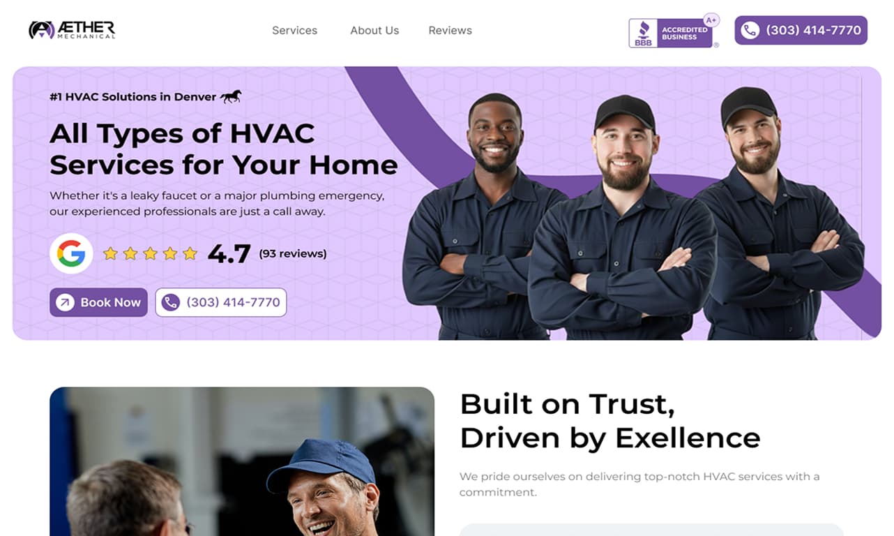 The transformation of Aether Mechanical’s digital presence successfully aligned their online identity with their professional service standards. By delivering a modern, conversion-focused platform, the project established a more intuitive experience that builds trust and provides a scalable foundation for their growth in the Denver market.