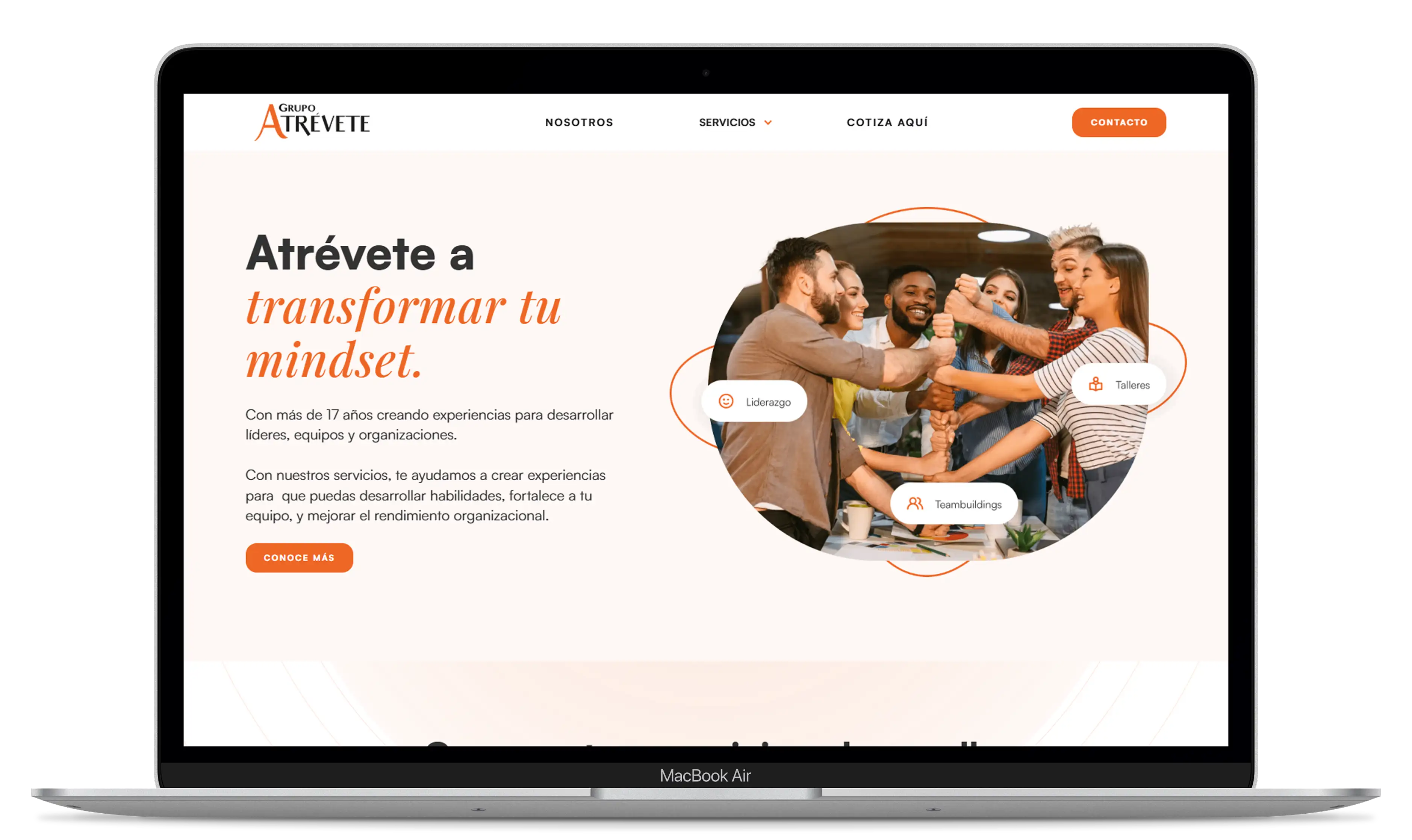 Grupo Atrévete is a company specializing in team building, leadership, and coaching programs for corporate and individual clients. The project focused on redesigning its website to clearly convey its value and improve communication with potential partners and companies.